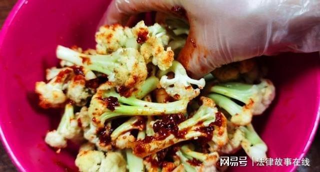 第1步:将花菜切成小朵,放入盆中,用淡盐水浸泡20分钟。将花菜上的农药残留及虫卵,全部浸泡出来。用淡盐水浸泡,可以给花菜杀菌。