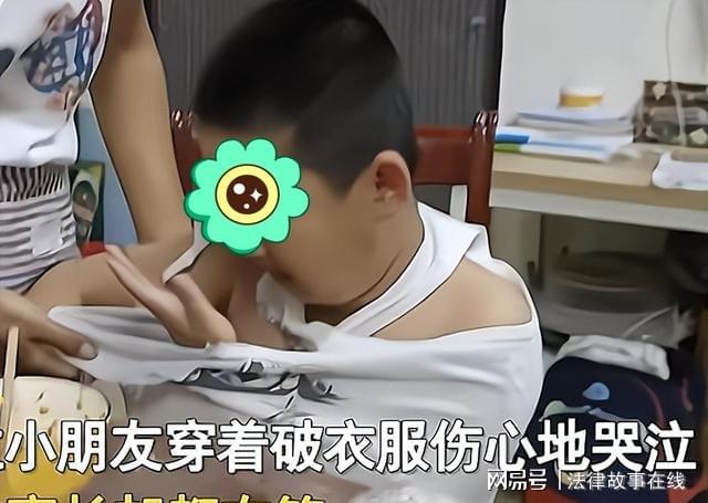 而造成这个局面的原因是他在学校被一位小女生欺负了,不仅被打哭,身上的衣服也被撕烂了,可以说是衣不蔽体了。
