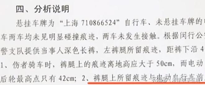 法庭上,鉴定中心的工作人员说:“这个痕迹确定是碰擦所形成的,所以不存在任何的假设。本案这件事梁师的裤腿上确实是轮胎的痕迹。而这个轮胎与梁师和庞刚都没有关系。”