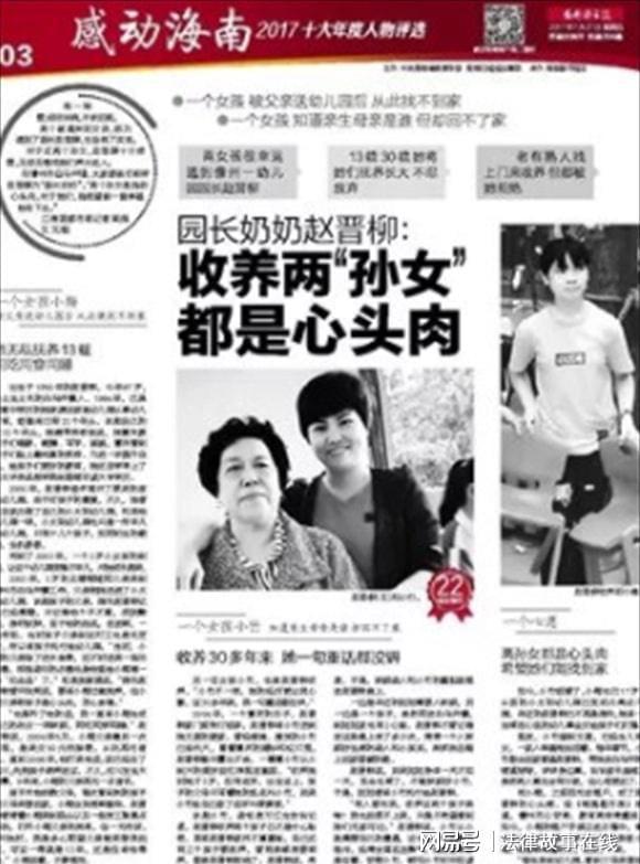 收养她的奶奶名为赵晋柳,晶晶并不是她在大街上捡来的,而是被一个男人送过来的。她和丈夫两人当时都在幼儿园里面,一名男子带着一个小女孩塞到她手里,还给了她一点钱,此后便再也没有出现过。赵晋柳是个心善的人,小女孩也很乖巧听话,从那时候起她便给孩子取名小梅,一直将她留在身边悉心照顾。