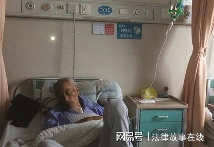 他躺在病床上,讲述着自己死后的财产分配情况,样子很是虚弱,身边站着好几个人。