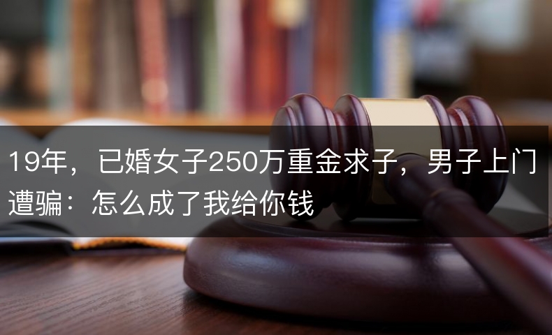 19年,已婚女子250万重金求子,男子上门遭骗:怎么成了我给你钱