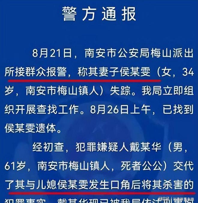 61岁的戴某华认为自己面子过不去,竟然一气之下用菜刀将侯某雯活活砍死,随后将肢解的尸体分别抛至各地。这时小戴及其母亲也都在家,不仅没有下楼劝阻,甚至还在案发第三天假装什么都不知道以侯某雯失踪为由,企图为戴某华摆脱嫌疑。