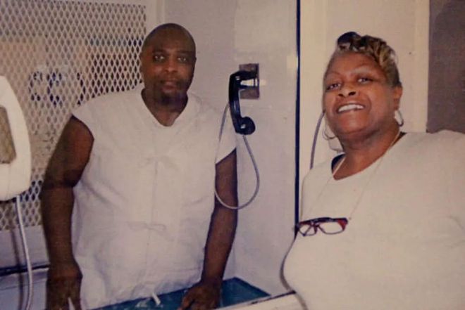 ▲在监狱和家人见面的亚当斯
