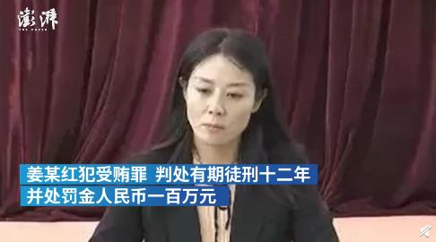 今年1月22日,因犯受贿罪,姜保红被判处有期徒刑十二年,并处罚金人民币100万元。