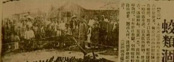 但这却引起了博物馆长得注意,他曾经在旧文献——1934年出版的一期《盛京时报》中看到过有关这件事的报道。那篇报道的标题是"蛟类涸毙",还拍了一张照片,照片中的人们正围在旁边看。