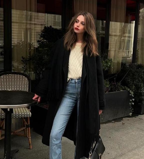 黑色长款大衣+九分直筒牛仔裤+粗跟短靴,这样的穿搭组合也太显气场了吧?走路都带风的那种,显高挑又不失温度。