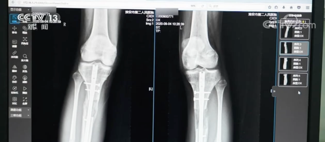据淮安市第二人民医院骨科主治医师王磊介绍,这名男性患者22岁,当时是拄双拐来就诊的。通过拍X片发现,男子双小腿做了增高手术,骨折断端没有完全愈合好,手术部位的皮肤有炎症反应。