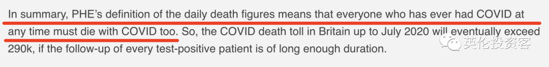 简单来说,即便死者是三月确诊,而后康复,但最后在七月因为其它疾病死亡,英格兰地区也会将其算为新冠死亡。两位教授呼吁英格兰公共卫生部向苏格兰、北爱学习,立刻停止这种统计方法。