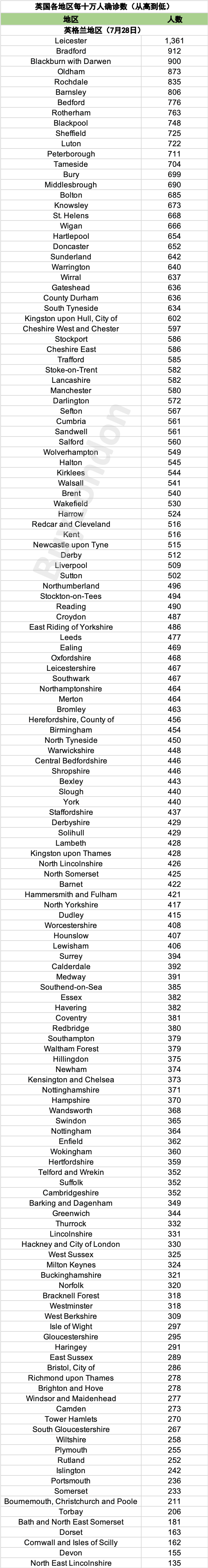 *附7月28日更新的疫情图表,包括英国病例增长、地区分布。