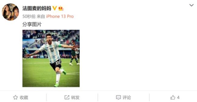 还有这一次世界杯积极预测赛事的潘粤明,调侃自己预言成功,最后祝贺梅西。