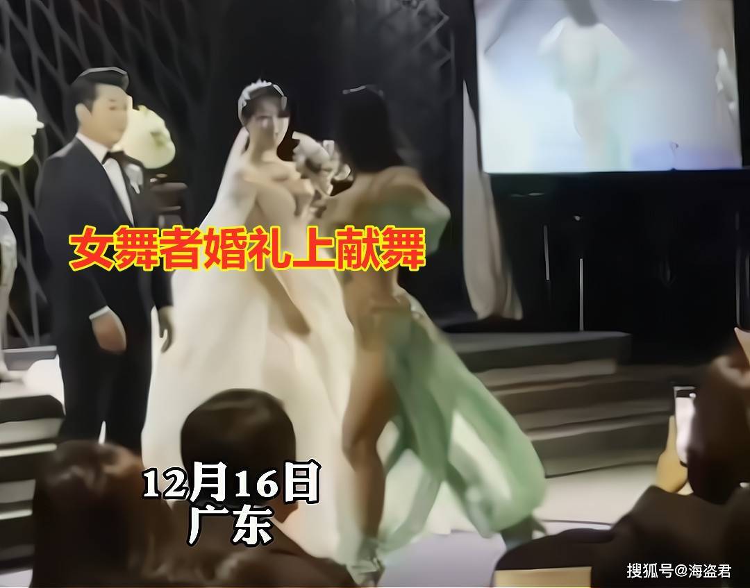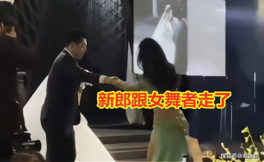 标题:新郎看女舞者的表演入神,不顾新娘拉拽,牵手女舞者与她共舞一曲