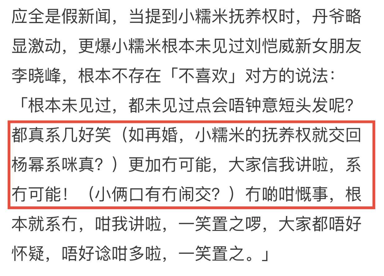 导读:刘恺威父亲出面澄清,否认儿子情变,称小糯米还未见过李晓峰