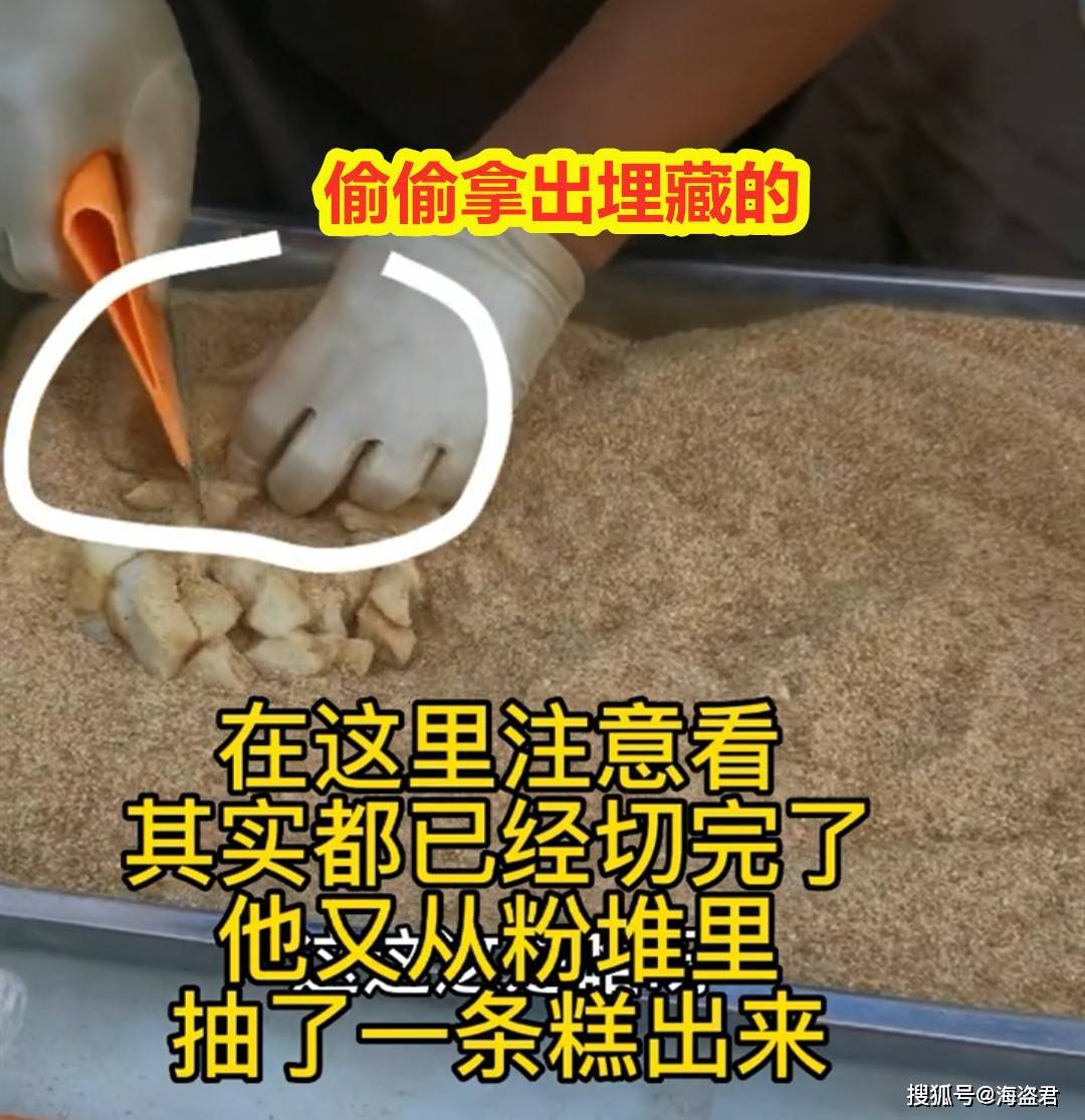 女子仔细查看了完整的视频,发现真如那名网友所说,粉下面还埋着很多条打糕,摊主在女子眼皮子底下先后2次取出埋藏的打糕切成块。