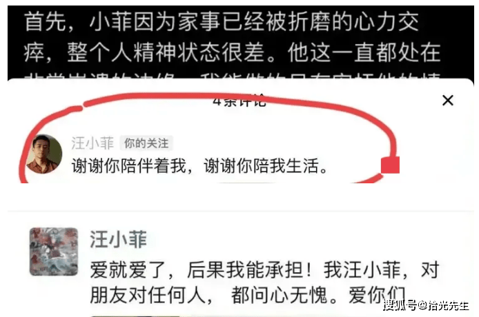 不仅如此,后来汪小菲还在张颖颖的长文下留言:“谢谢你陪伴着我,谢谢你陪我生活。”此外,疑似汪小菲朋友圈曝光,只见他写道:“爱就爱了,后果我能承担!我汪小菲,对朋友对任何人,都问心无愧。爱你们。”
