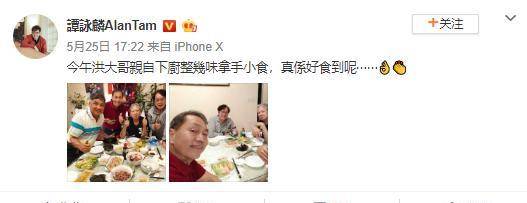 近日,谭咏麟在自己的个人社交平台上上传了两张聚餐的照片,并且配文:“今午洪大哥親自下廚整幾味拿手小食,真係好食到呢”照片内,洪金宝、谭咏麟一众好友围桌而坐,洪金宝亲自下厨,做了满满一桌的丰盛晚餐,并获得谭咏麟的赞赏,照片中,大家都竖起拇指,表达自己对这一餐的满意。从晒出的食物照片来看,也以绿色健康食品为主,看来上了年纪之后,无论是谭咏麟还是洪金宝都不能不服老,纷纷注重起自己的身体健康来了。
