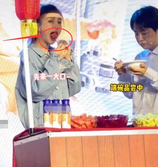 眼看着确实没有人来送盘子,而baby又想要吃,所以你们注意看她是咋吃的,那么大的一块水果,她竟然直接张大口,就要往嘴巴里送啊,因为她一口吃掉的话,就不会滴下来果汁,但同时她又要保持着不蹭掉口红,所以就只能这么做了,虽然看着蛮可爱的,但在粉丝看来,感觉是有点心疼的。