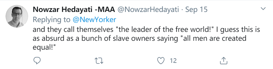 ▲他们称自己为“自由世界的领袖”!我想这跟一群奴隶主说“所有人都平等”一样荒谬