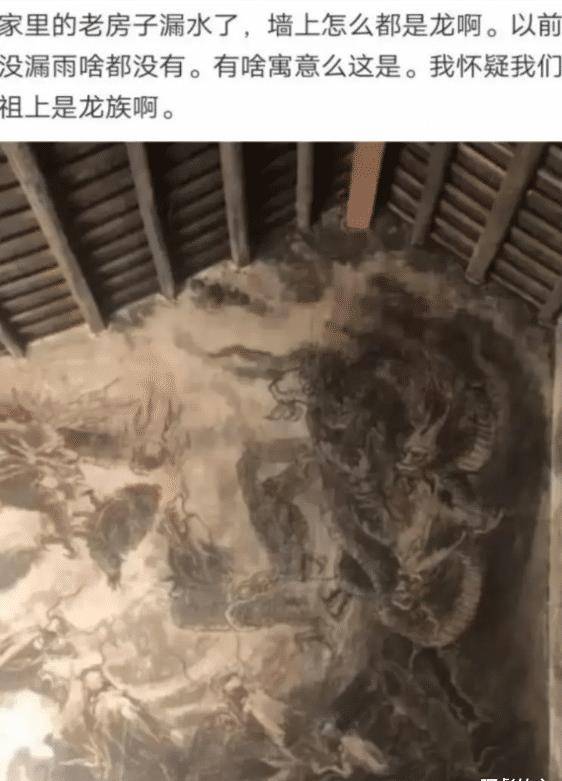 最近一段时间经常下雨,所以很多地方的老房子都扛不住,开始漏水了。一名网友就发现,他家的墙上因为漏水出现了很多龙的图案,而且这种现象以前都没有发生过,所以他就想知道现在这样是不是有什么寓意。热心的网友们已经回答了他的问题。