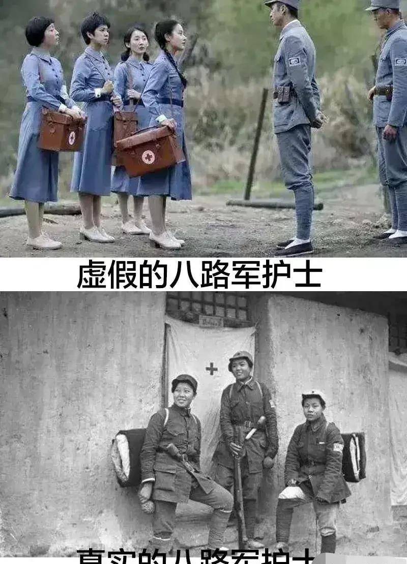 三、除了男演员打扮的体面外,女演员就更别说了,她们比男演员更甚一筹。你看修身连衣裙,白色高跟鞋,都是崭崭新新的,精致得不成样子,恐怕不知道的观众还以为是“战区模特队”。八路军女兵真的很时髦啊!导演脑子是不是进水了!真是脑洞大开啊!