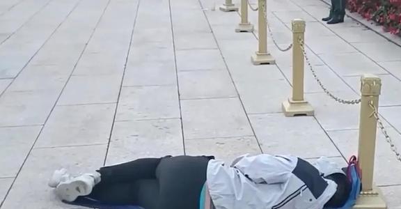 男子连夜去天安门广场看升旗睡着,结束了还没醒,现场一幕太搞笑
