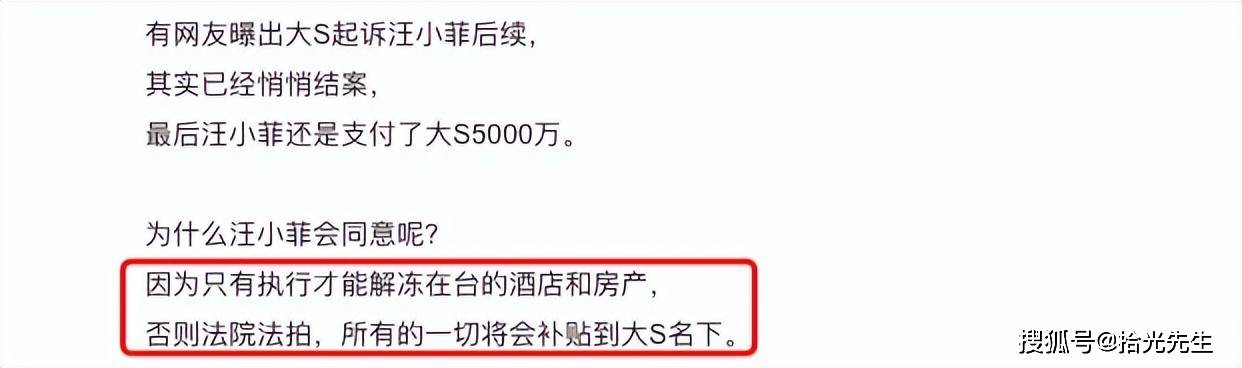 但大S太贪心,她本可以躺在家里就有钱花,却偏偏想要更多,甚至网红虞美人还分析称,大S起诉汪小菲,其实是想要得到他在台湾省的酒店和房产。