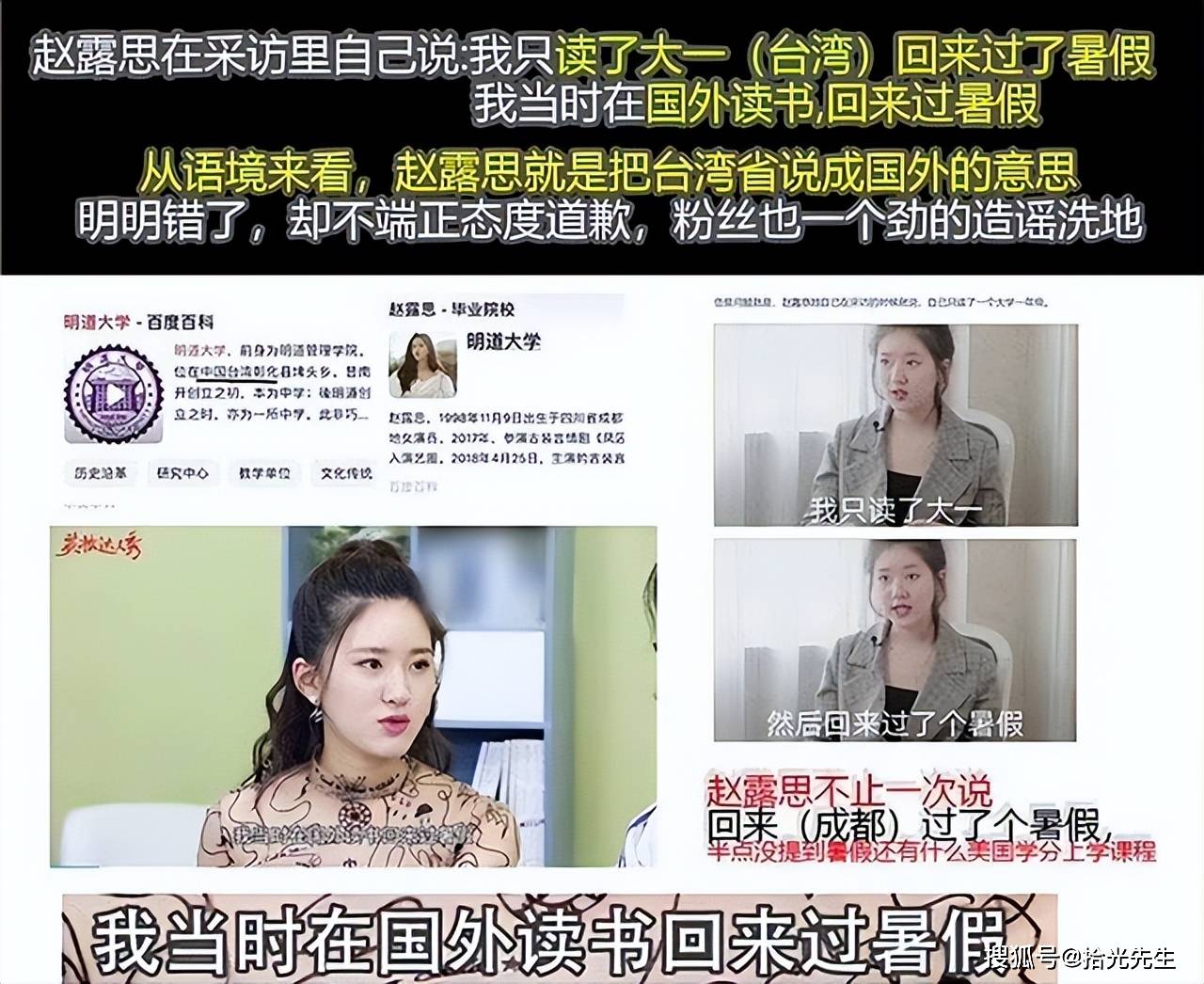 我们先来说一下“狗仔”所说的“立场问题”,其实从他爆出的采访截图可以看到,赵露思在采访中确实说了“在国外只读了大一,回来过暑假”。