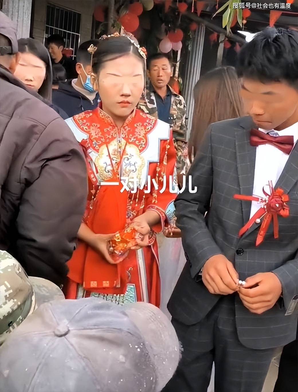 或许有人会说孩子太小,在这种大场合出现紧张的现象也可以理解,其实,据参加婚礼的村民介绍,新娘刚满17岁,在法律意义上还属于孩子。