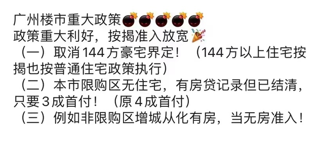也是在同一天,一张图在珠三角的各大房产群里疯狂传播:广州取消认房认贷!