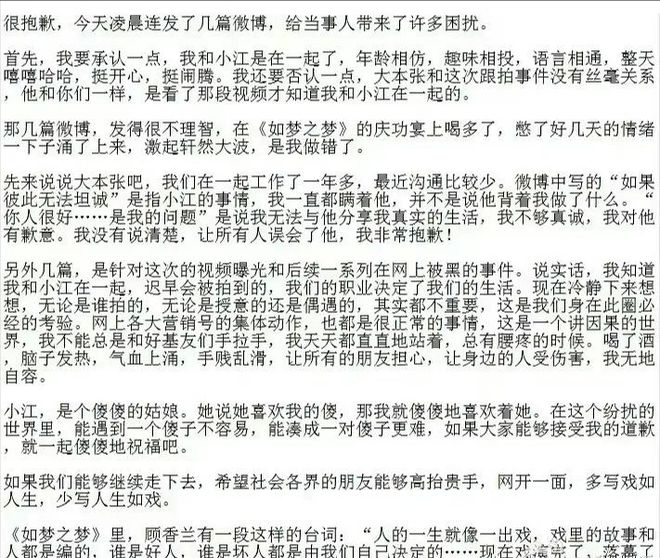 但是,在第二天胡歌酒醒之后,他又删除了这几条“酒醉的动态”,同时他重新发布了一长篇小作文,向经纪人大本张道歉,并且承认了他和江疏影的恋情,而且他也希望得到外界的祝福,当然了,这个长篇小作文其实是故意做给外界看的,事实上没过多久之后,胡歌和江疏影就分道扬镳了,并且在这些年以来,双方都是颇为避讳,这一次因为电视《张居正》的这个饼,算是两人很难得意见的捆绑了。