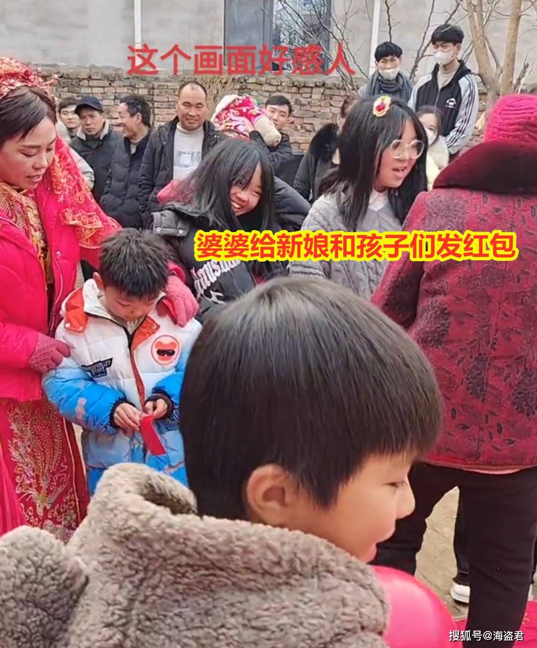 磕完3个头后,奶奶还给新娘和几个孩子都派发了红包,孩子也都改口叫“奶奶”。