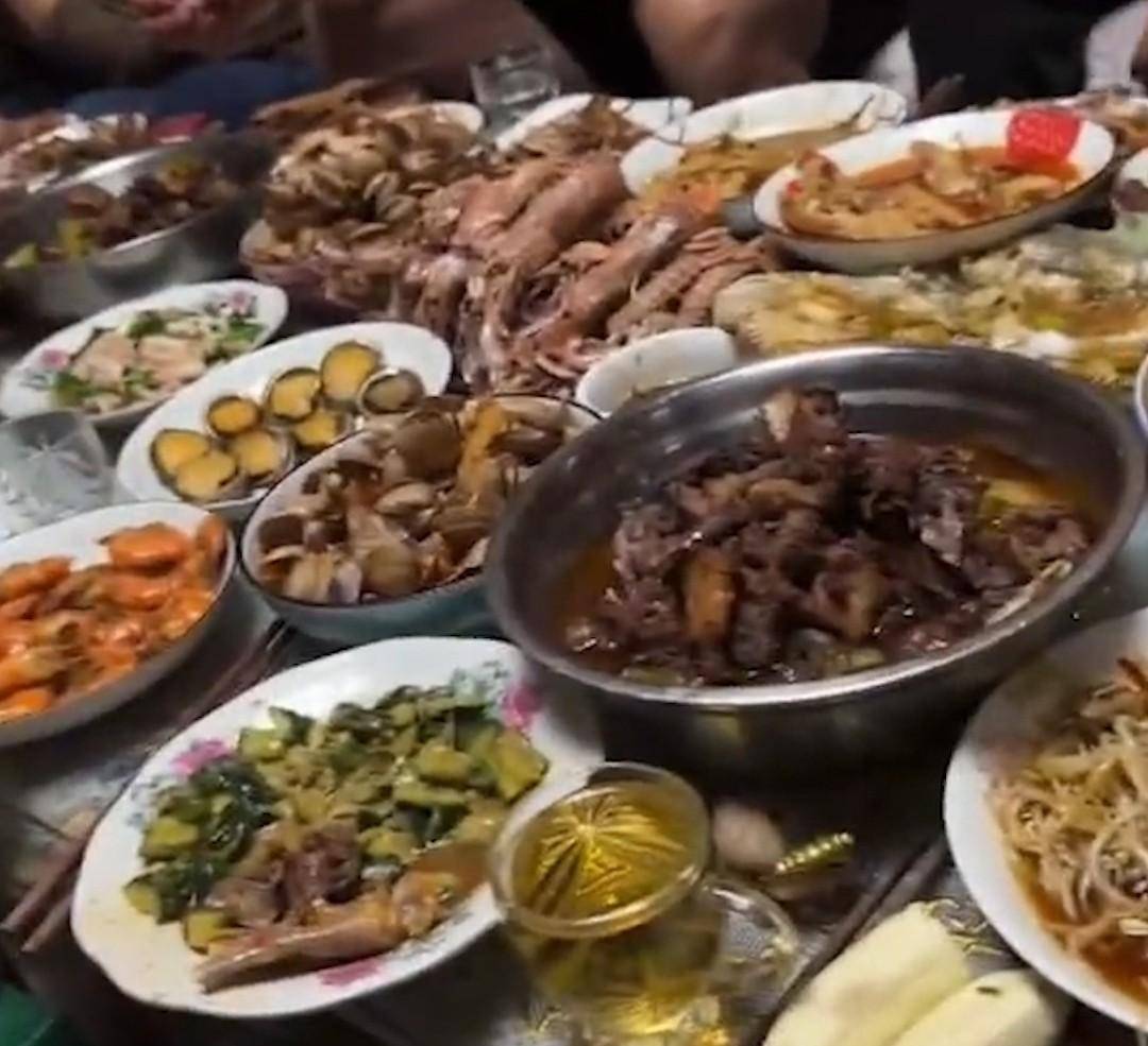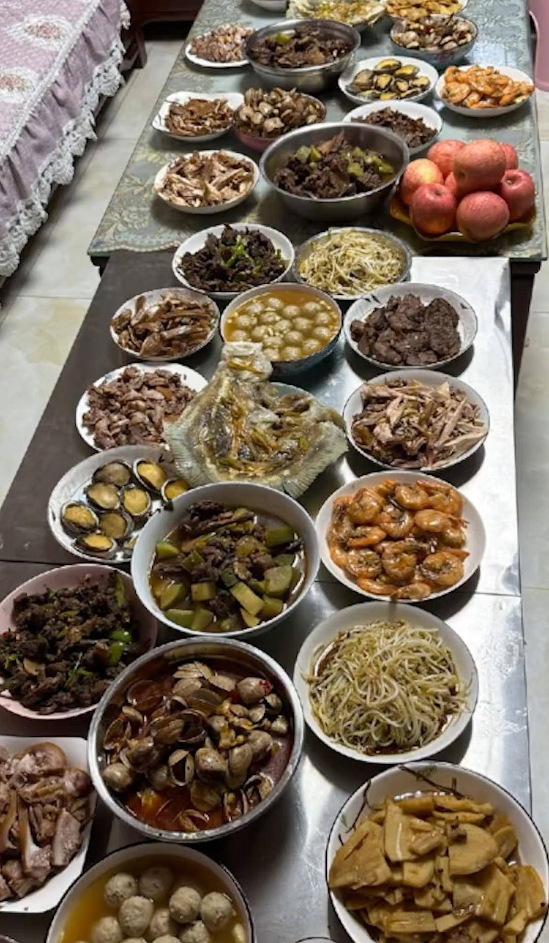 女子第一次带男友回家过元旦,父母早起准备几十道菜,拼满3桌子