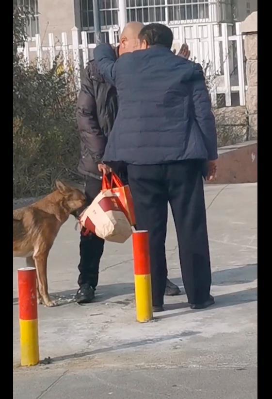 就有这么一位网友,这一天在楼下散步的时候,偶遇到了有两位喝得醉醺醺的大叔。这俩大叔一看就是刚从饭店里出来,包里还装有打包的饭菜,在回家路上正寒暄着呢!不过此时不知道是谁家的狗狗,被大叔包里打包的饭菜吸引过来了,趁着大叔在互相拍肩膀说话时,它大口大口吃着饭菜呢,可真香呀!
