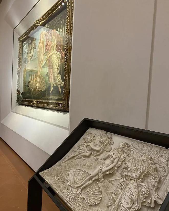 32.经典名画的旁边,有一幅内容一样的雕塑画。这幅雕塑画,是用来给盲人触摸的。
