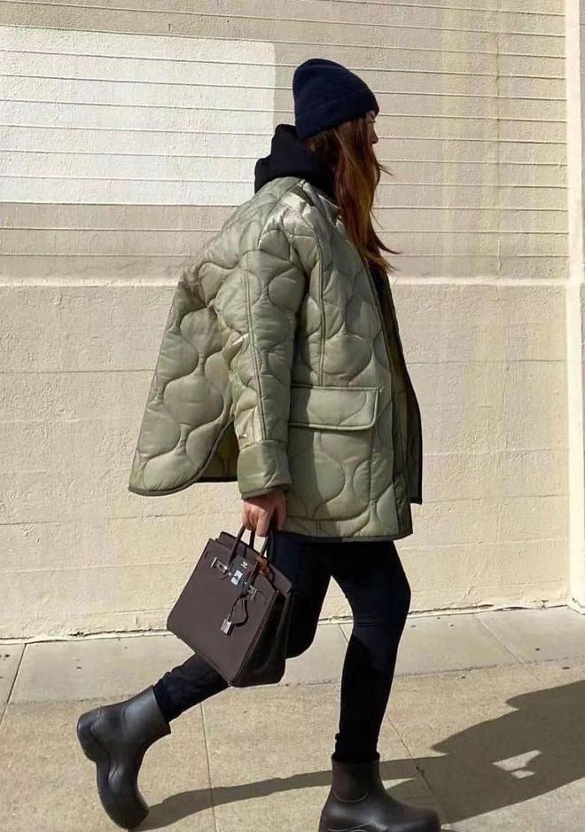 如果黑白色的羽绒服都让你提不起穿搭兴趣,不妨选择低饱和度的雾霾绿色系,小众而且撞衫率非常低,能避免一定程度的尴尬,显白效果也很优秀,所以自然洋气。