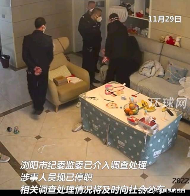 你没有看错,这一幕来自于环球网曝光的家庭监控,一名执法人员小心翼翼地将小孩扶着,坐在沙发上的两名成年人,一人正在整理口罩,另外一人捂着脸看不到神情。