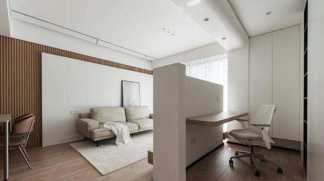 定制设计效果很不错,衣柜一门到顶,无门把手设计,弱化了柜体的存在感,整洁一体美观。内凹空间设置书桌,更节约空间,满足屋主阅读及办公的需求,搭配亚克力材质的凳子,完美。(图片来源:一宅一物建筑设计,如有侵权联系删除)
