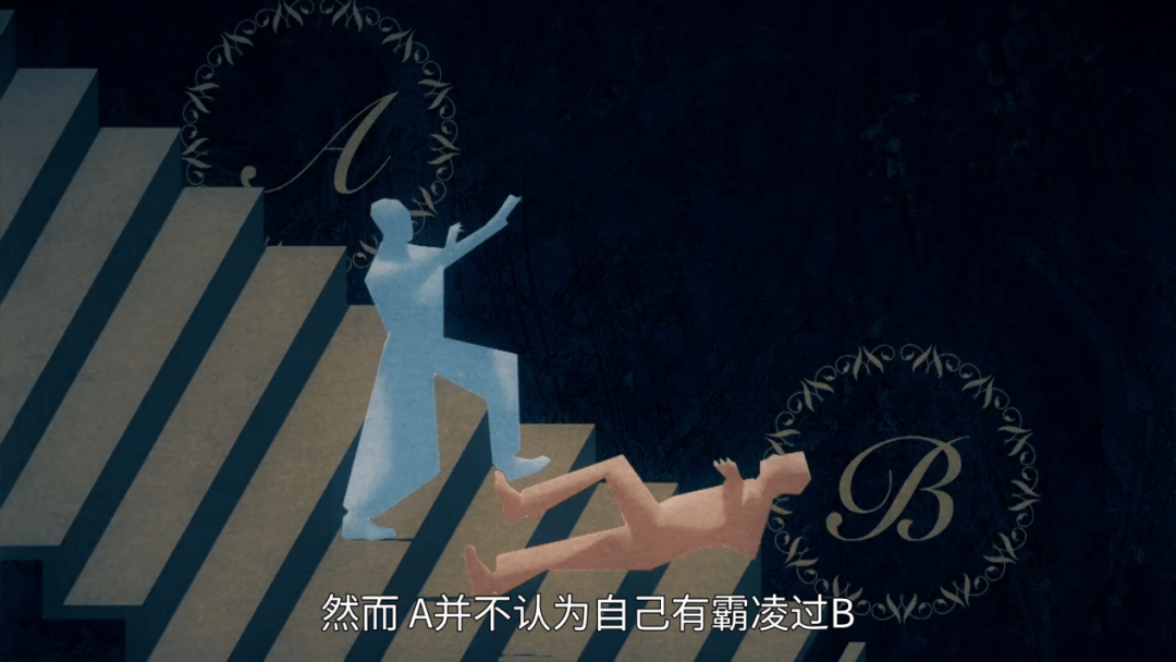 以B的视角来看,他平时就受到A的霸凌,这次是被A故意推下楼梯的。而以A的视角来看,他觉得自己以前都只是和B闹着玩,这次是真的不小心。