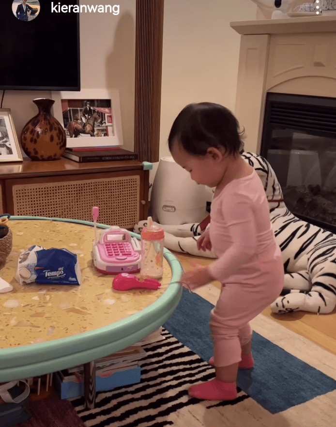 包括王昀佳也分享了女儿的近况,穿着粉色秋衣在房间内各种玩耍,白白胖胖的超可爱。