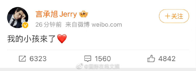 不是大瓜!没事!言承旭发文:我的小孩来了