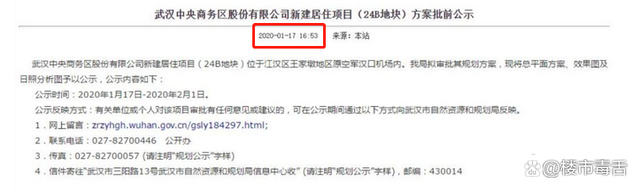 事实上,早在2020年1月,武汉自然资源与规划局就进行了泛海芸府(武汉中央商务区股份有限公司新建居住项目(24B地块))的方案批前公示。