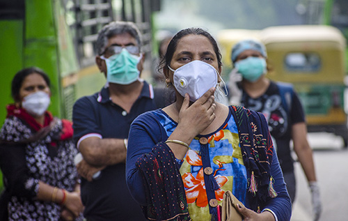 2020年7月9日,印度新德里,通勤者戴着口罩等公交。图|人民视觉
