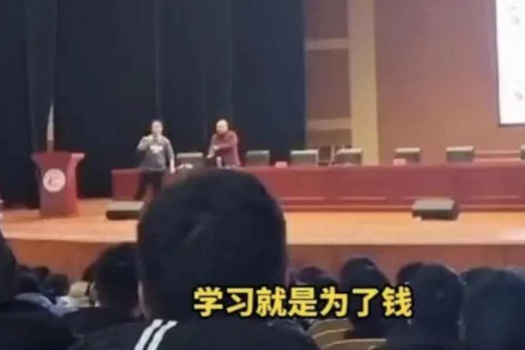 而这番庸俗发言激怒了台下这所有着120年历史的学校的中学生们,有个学生直接跑到台上一把夺过其话筒,然后大声批判到:“他!眼里只有钱!崇洋媚外!努力学习是为了什么?是为了中华民族的伟大复兴!”