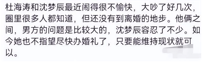 总的来说,能看到两人同框秀恩爱,确实是一件好事儿,但关于两人的婚礼问题,以及杜海涛必须要给沈梦辰的“婚礼约定”,也是希望杜海涛能放在心上、记在心里,而不是流于形式。