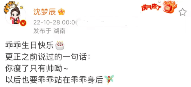 配文中,沈梦辰丝毫不掩饰对杜海涛的爱意,尤其是那句“你瘦了只有帅哟,以后也要站在乖乖身后”,更是让不少网友直呼太甜了。