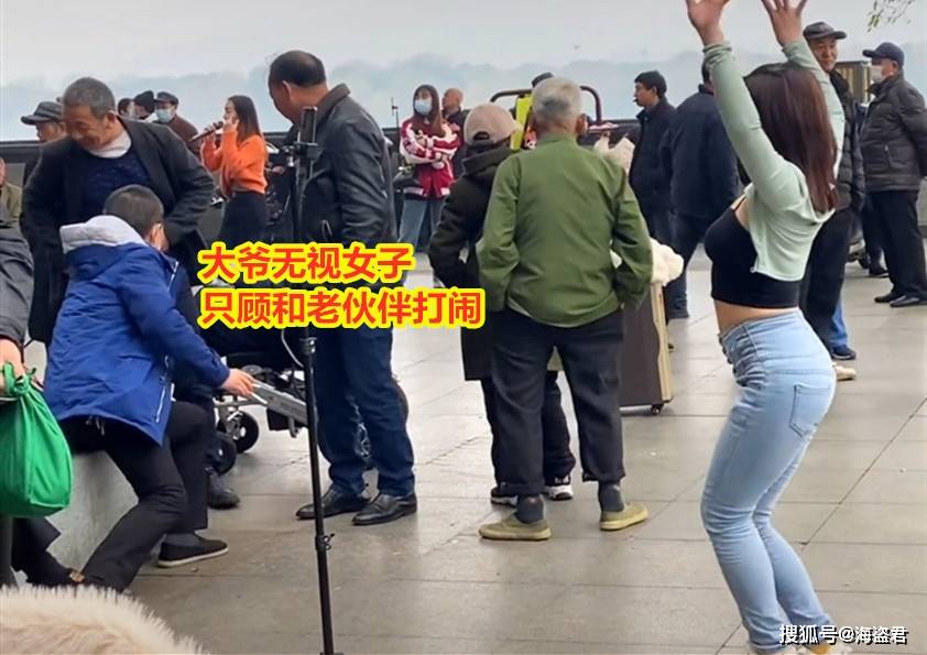 女子为赚钱向大爷献舞,大爷却只顾和同伴打闹,网友:大爷有定力