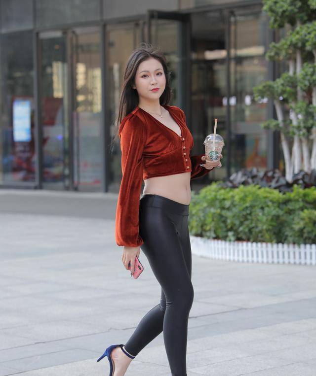如果想突出露脐长袖的优点,还需要黑色皮裤衬托。这种长裤富有弹性,可以更好地展现小蛮腰,将两条粗腿修饰的又细又长。在衣品强大的女孩心中,她们不会在夏天穿黑色皮裤,PU材质不透气,穿着太闷热,不符合她们的气质,相比起厚重的黑色皮裤,简单时尚的休闲裤更适合她们。