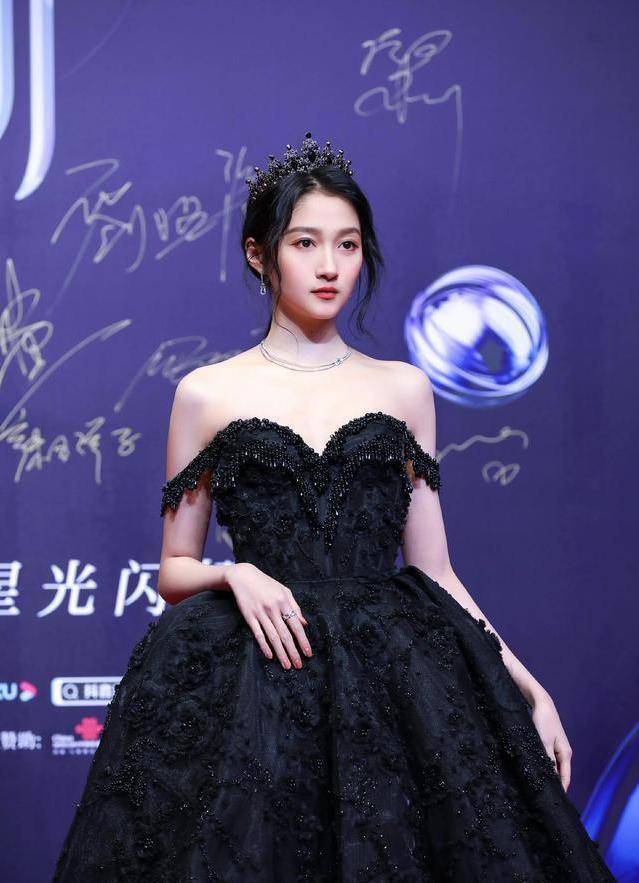 当天晚上她有两套造型,都成功出圈。这不得不让人感叹她姣好的身材。第一套造型是在前一天就公布了,暗黑公主的风格,加上猫咪和皇框的衬托。这套造型成功出圈,这也是她的红毯造型,一袭黑色公主裙跟以往乖乖的形象大有不同。