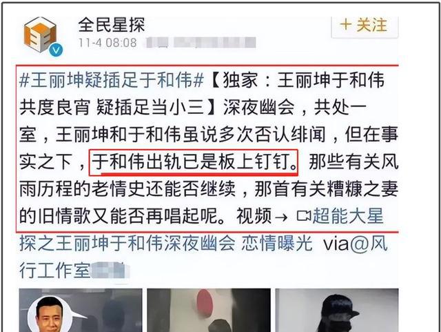 眼看事情闹到了如此地步,于和伟最终选择与王丽坤分手。