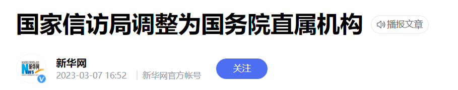国家信访局过去是由国务院办公厅管理,现在调整为国务院直属机构。